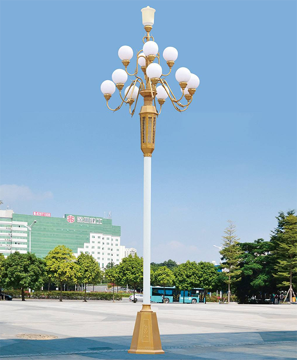 中华灯外观古朴大方,一般有多个光源,多见为6-12个,照明度高,景观效果好,是传统式的代表系列之一。 灯罩为压克力罩PC或者是进口PNNA有机材料,底座一般为铝制或者是铁制。灯杆一般为Q235钢材卷制而成,厚度多为:2.75-3.5mm;高度多为:6-10m;紧固件螺钉、螺母为不锈钢(外露)。 光源:高瓦数节能灯或高压纳灯、金卤灯,照射角度大,范围广,透雾性强,照度均匀。 适用范围:中华灯适用市政工程、园林亮化工程和电力局、开发区、别墅区、广场等户外91看片APP18禁止照明工程。